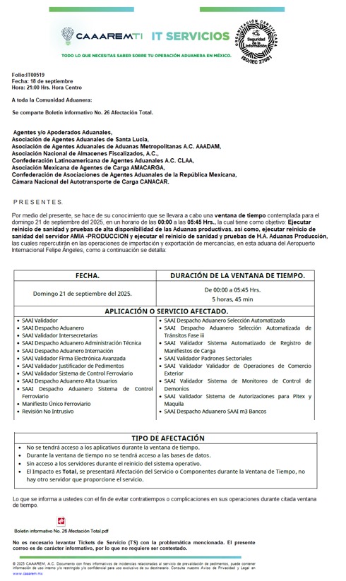 AVISOS Conoce a tu Agente Aduanal Boletin-informativo-No.-30 HI_10_Mejoras-a-diversos-avisos-AGACE-1 contacto Isauro Alfaro No. 108, Zona Centro, 89000, Tampico, Tamaulipas. asociacion@aaata.org.mx 833 219 27 90833 219 00 76 SÍGUENOS EN Aviso de Privacidad